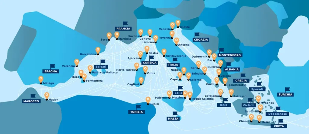 Collegamenti marittimi verso le più importanti destinazioni nel Mediterraneo, le isole interne della Grecia, i Balcani e il Nord Europa.