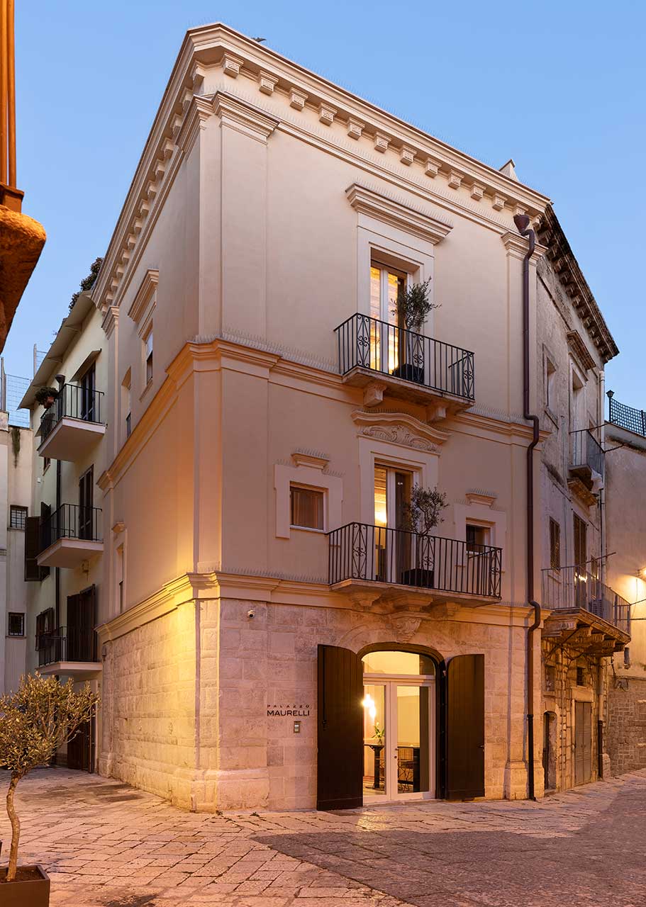 Nel 2017 abbiamo avviato i lavori di ristrutturazione di Palazzo Maurelli, a pochi passi da Palazzo Calò, che ha visto la luce a Giugno 2022. Ampliamo con Palazzo Maurelli la nostra offerta confermando l’impegno nel mantenere alto lo standard dei servizi offerti.